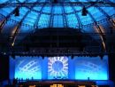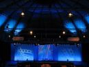 An event in the Festhalle using custom gobos to decorate the set, all inspired by the architecture of the building.